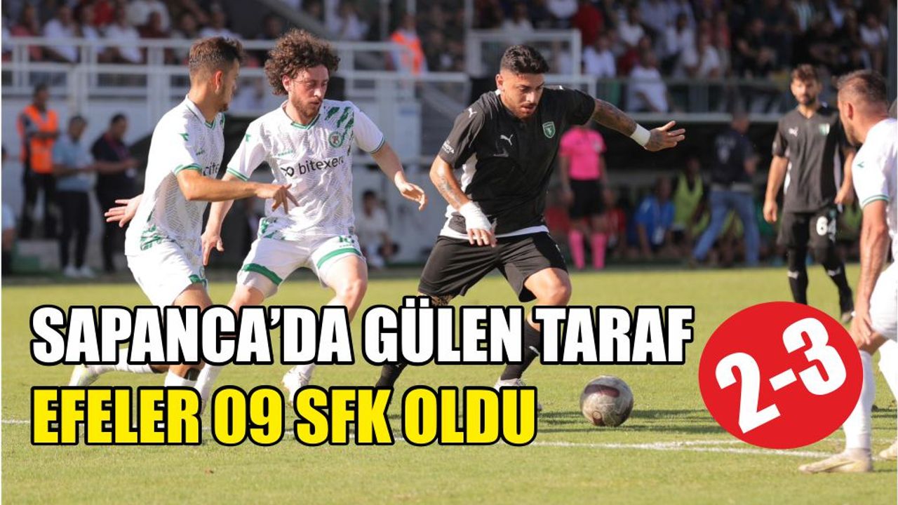 Sıcak bir havada başlayan karşılaşmada Efeler 09 SFK maça baskılı başladı. Maç orta alan mücadelesi ile devam ederken 7’nci dakikada ilk ciddi atağında golü bulan taraf Sapanca Gençlikspor oldu. Sol kanattan ceza alanına ortalanan topta buluşan Alihan yaptığı çalımla rakibinden kurtardığı topu sert bir şutla kaleci Kemal Mert’in yanından ağlara gönderdi. 1-0