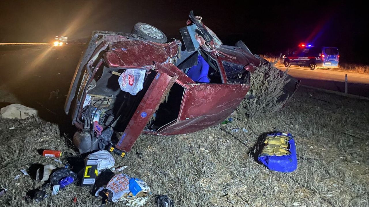 Kontrolden çıkan araç yol kenarındaki şarampole devrildi. Kazanın ardından bölgeye sağlık ve jandarma ekipleri sevk edildi.