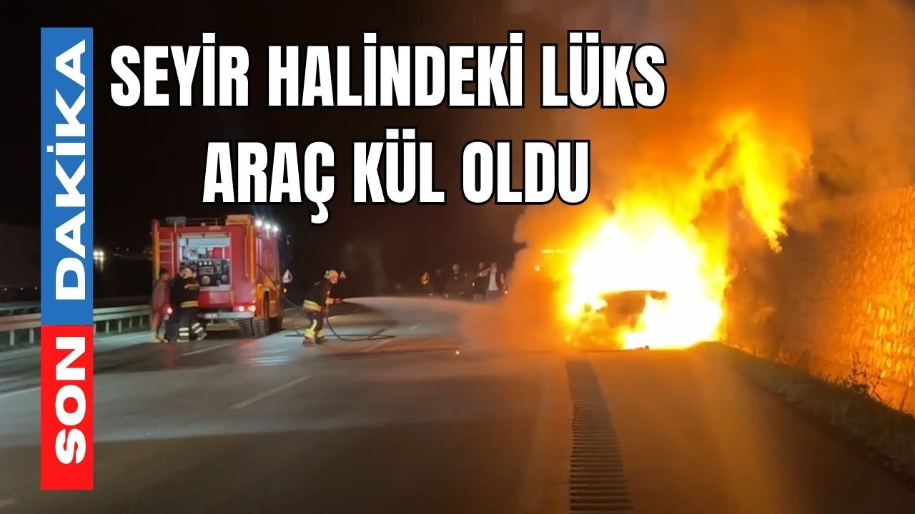 Samsun’un Kavak ilçesinde seyir halindeyken yangın çıkan lüks otomobil kullanılamaz hale geldi.