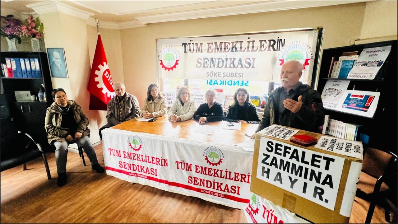 Emekli Sen Söke Şubesi’nde düzenlenen basın açıklamasında emekliler maaşlarının iyileştirilmesi ve seyyanen zam taleplerini bir kez daha dile getirdiler.