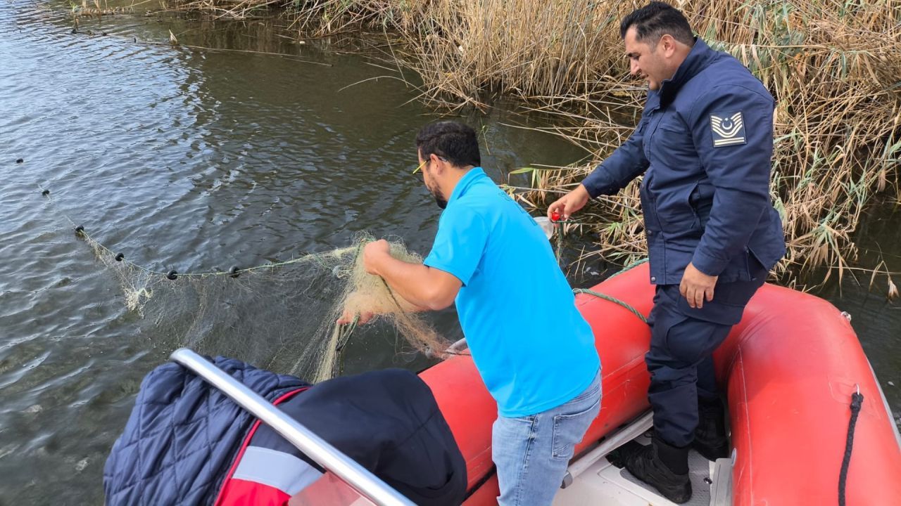 1380 Sayılı Su Ürünleri Kanunu kapsamında İlçe Müdürlüğünce denizde ve Büyük Menderes nehrinde su ürünleri denetimi yapılan denetimlerde. Büyük Menderes nehrinde tespit edilen kullanımı yasak olan ağlara el konuldu.