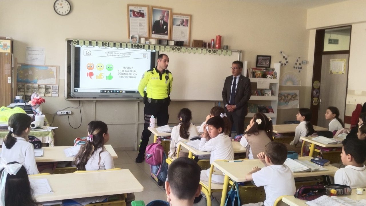 Emniyet Genel Müdürlüğü tarafından ilkokul öğrencilerine yönelik başlatılan ‘Trafik Dedektifleri Projesi’ kapsamında verilen eğitimde trafikte yaya, yolcu, sürücü sorumluluklarını erken yaşta öğrenmeleri hedeflenmekte.
