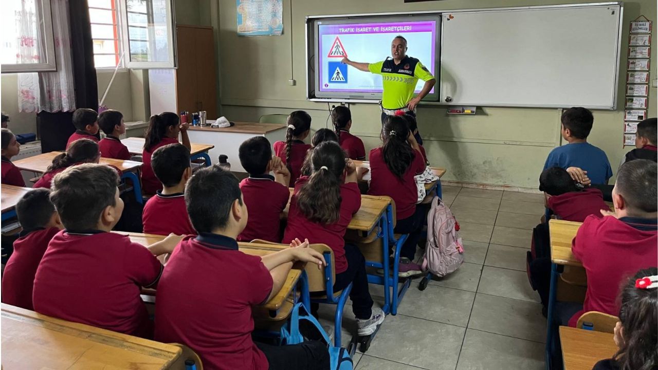 Genel trafik kuralları, Okul servislerinden inme ve binme kuralları, Bisiklet binme kuralları, Araçlarda emniyet kemeri kullanmanın önemi, Trafikte görünürlük ile yaya okul geçitlerinde hareket tarzı konularında bilgilendirme yaptı.