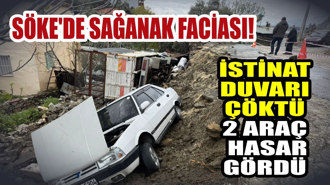 Söke ilçesinde etkili olan sağanak yağış, Aydın’da hayatı olumsuz etkiledi. Özellikle Sazlı Mahallesi’nde yağış sonrası eski bir istinat duvarı çöktü ve park halindeki bir otomobil ile kamyonette hasara yol açtı.