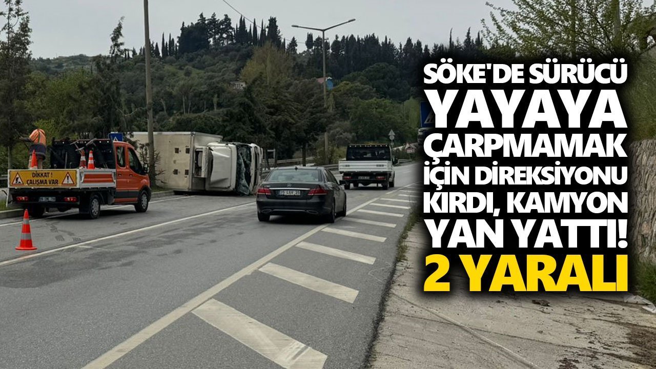 Alınan bilgiye göre A.B'nin kullandığı 09 AHB 151 plakalı kamyon, Kuşadası-Söke kara yolu Granta mevkisinde yaya geçidinden geçmek isteyen B.Ç'ye çarpmamak için yapılan manevra sonucu devrildi.