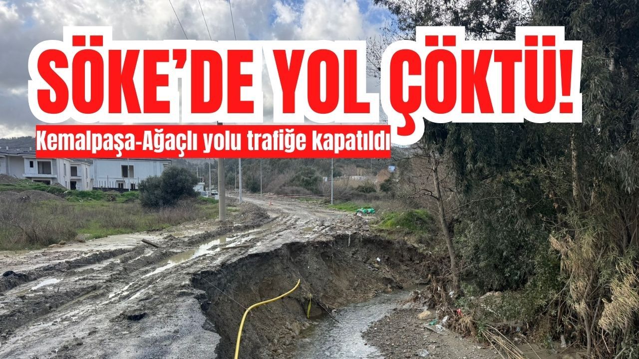 Aşırı yağışlar nedeniyle Söke’de Kemalpaşa Mahallesi ile Ağaçlı yolu arasında yol çökmesi meydana gelirken, güzergâh güvenlik gerekçesiyle trafiğe kapatıldı.