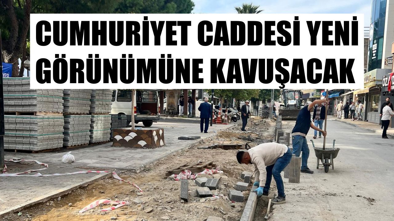 Yeni kaldırım taşları, yenilenen yol kaplaması ve aydınlatma elemanlarıyla Cumhuriyet Caddesi’nin daha modern bir görünüme kavuşması hedefleniyor.