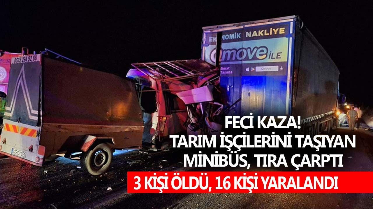Mersin'in Tarsus ilçesinde tarım işçilerini taşıyan M.G.'nin kullandığı 07 BCY 359 plakalı minibüs, Ankara-Tarsus Otoyolu'nun Damlama mevkisinde B.A. idaresindeki 42 ASD 781 plakalı tırın 42 ATL 24 plakalı dorsesine arkadan çarptı.