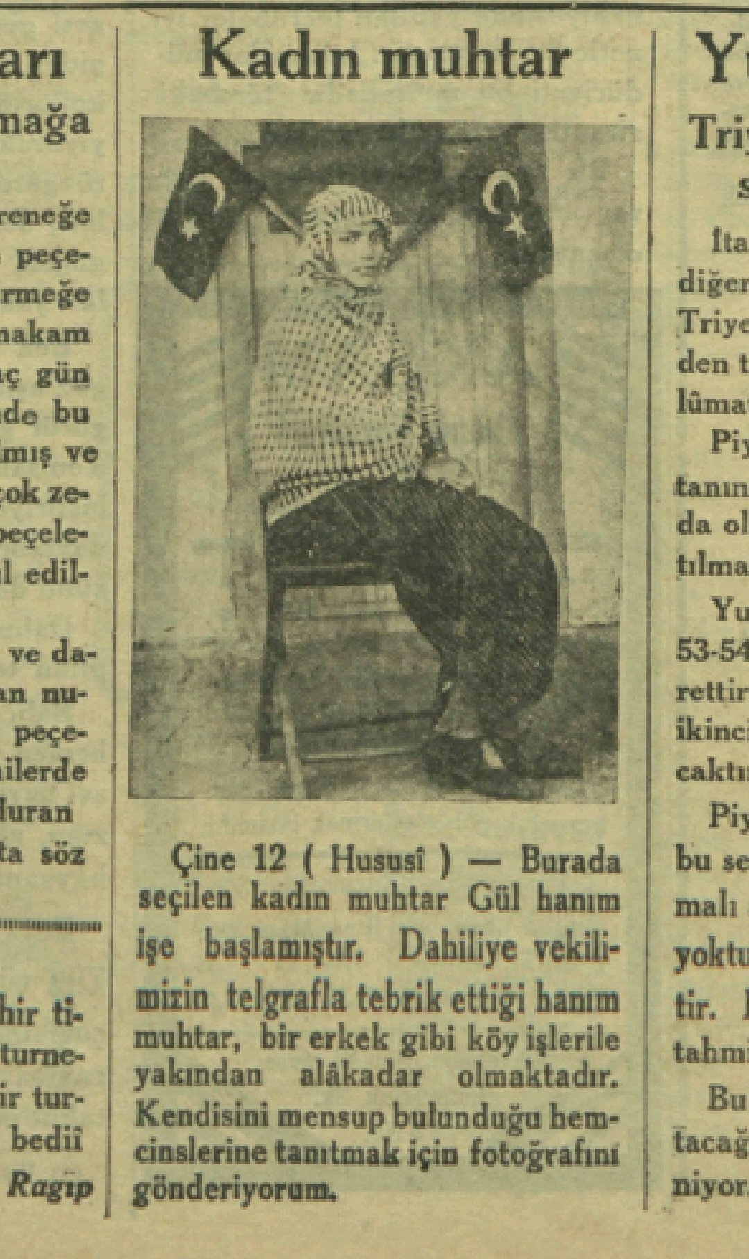 Türk kadınına belediye seçimlerine katılma ve muhtar olma hakkının tanınmasının hemen ardından, Aydın'ın Çine ilçesine bağlı Demircidere köyünde (bugünkü Karpuzlu) tarihi bir seçim gerçekleşti. 26 Ekim 1933 tarihinde Köy Kanunu'nda yapılan değişikliği takip eden günlerde, köy meydanında kurulan sandıkta büyük bir rekabet yaşandı. O dönem köyün ileri gelenlerinden oluşan 7 erkek aday muhtarlık için yarışırken, 32 yaşındaki Gül Esin (Gülkız Ürbül) de adaylığını koydu. Yaklaşık 500 oy alan Gül Esin, erkek rakiplerini geride bırakarak oy çokluğuyla seçimi kazandı ve Türkiye Cumhuriyeti'nin 'seçilmiş ilk kadın muhtarı' unvanını resmen elde etti.