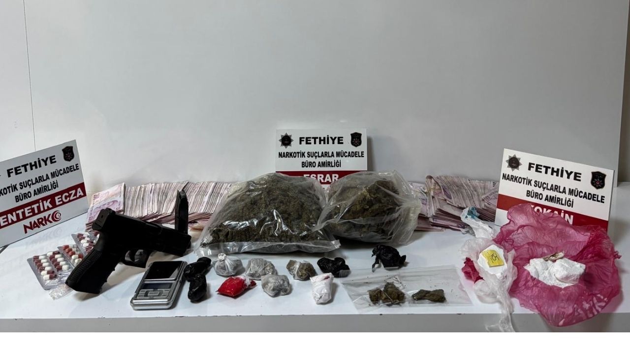 Muğla İl Emniyet Müdürlüğü Narkotik Suçlarla Mücadele Şubesi ekiplerinin yürüttüğü çalışmalar kapsamında, il genelinde belirlenen adreslere operasyon düzenlendi. Aramalarda bir miktar uyuşturucu madde, 3 hassas terazi, 127 sentetik ecza, ruhsatsız tabanca ve suçtan elde edildiği değerlendirilen para ele geçirildi.