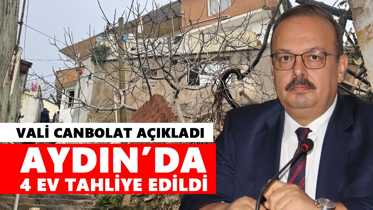 Olayın ardından açıklama yapan Aydın Valisi Yakup Canbolat, bölgede zemin kaymasının sürdüğünü belirterek, “Yıkılma tehlikesi bulunan 4 konut, zemin kayması tehlikesi nedeniyle tahliye edilmiştir” dedi.