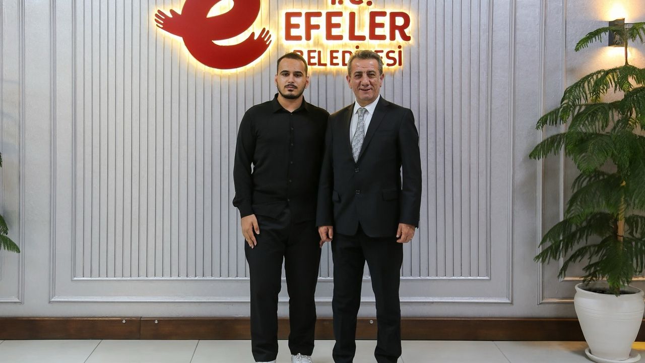 Efeler Belediye Başkanı Anıl Yetişkin, başarılı öğrenciyi belediyede ağırlayarak tebrik etti.