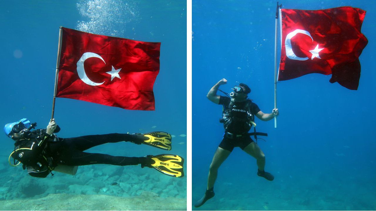 Dalgıçlar Önder Diktaş, Barış Safran, Berkay Çetin, Ersu Mengi, İbrahim Tombak, Burkay Kayıran ve Can Aksoy’un katıldığı etkinlikte, denizin maviliklerinde Türk bayrakları dalgalandırıldı. Dalgıçlar su altında saygı duruşunda bulunurken, bölgedeki balıklar da bu özel ana eşlik etti. Ortaya çıkan görüntüler ise izleyenlere görsel bir şölen sundu.