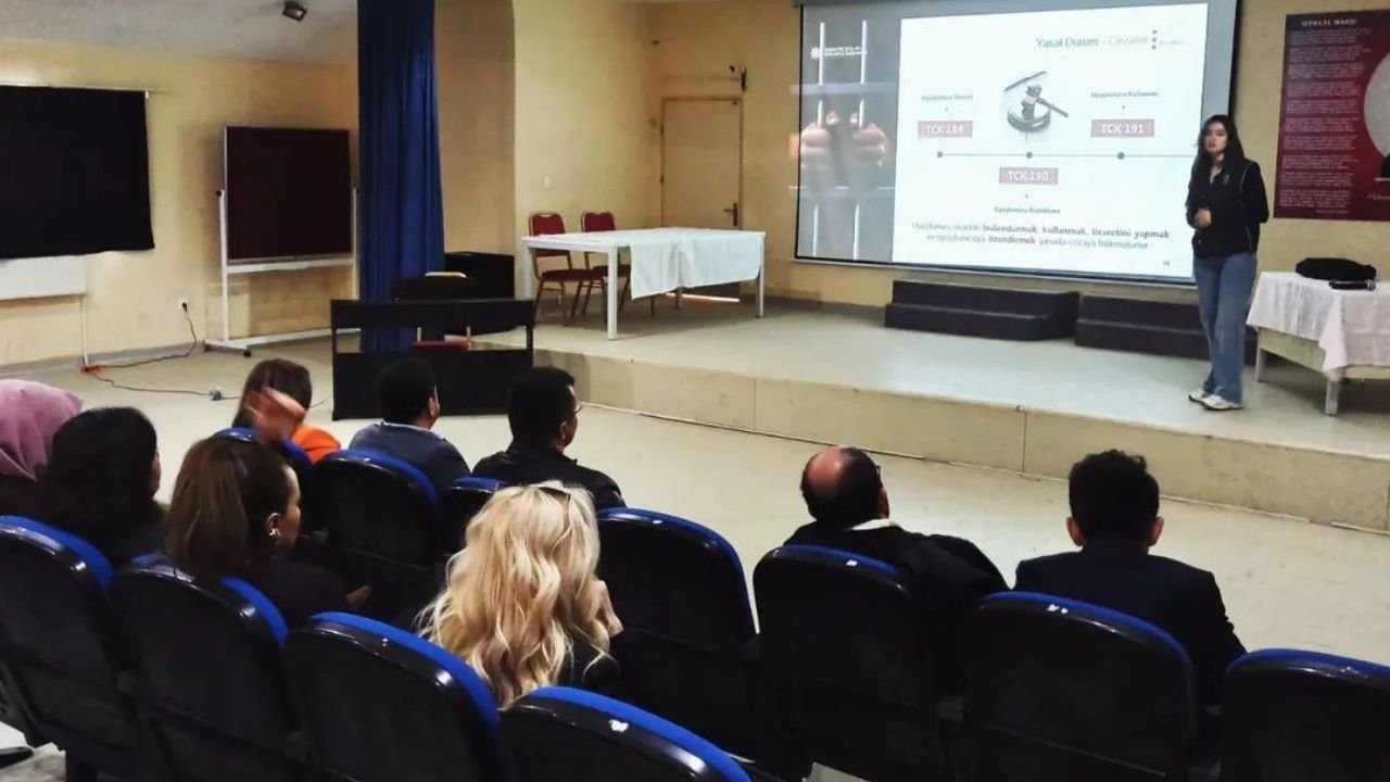 Seminerde; bağımlılık yapıcı maddeler ile bu maddelerin bireyler üzerindeki fiziksel, psikolojik ve sosyal etkileri detaylı şekilde ele alınarak madde bağımlılığıyla mücadelede farkındalık ve erken müdahalenin önemi vurgulandı. Madde bağımlılığıyla mücadelenin yalnızca mesleki açıdan değil, bir ebeveyn bakış açısıyla da değerlendirilmesi gerektiği ifade edildi.